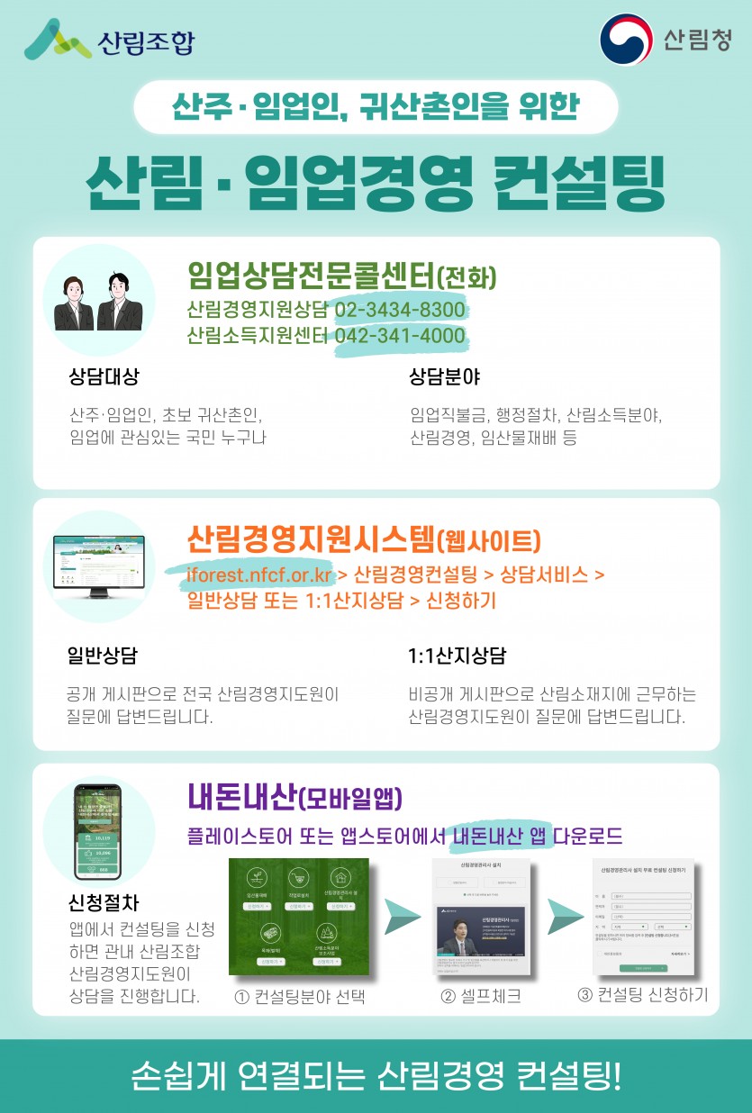 산주·임업인 여러분의 산림경영 컨설팅에 대한 많은 관심 바랍니다.