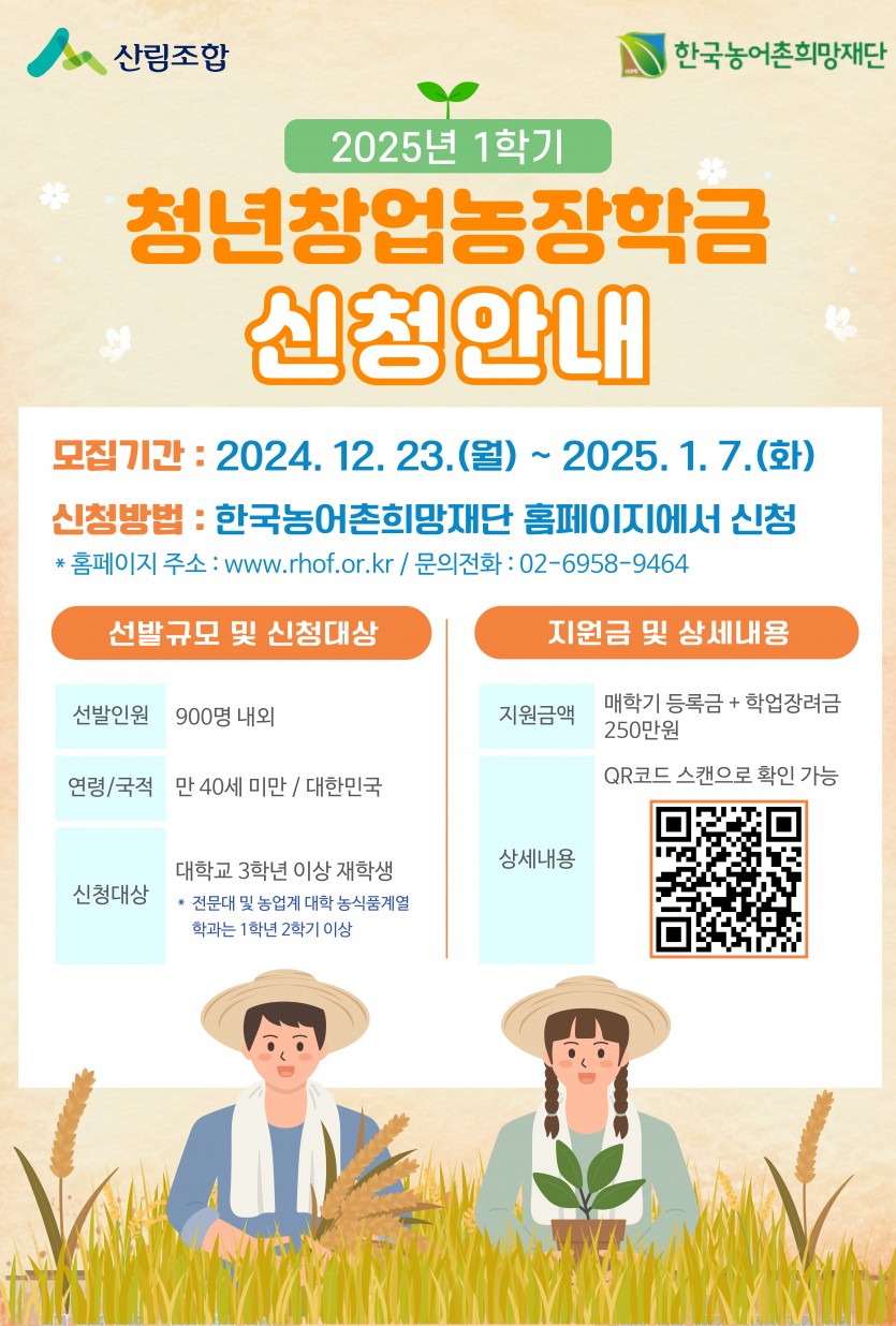 ['25년 1호] 2025년 1학기 농식품부 청년창업농장학금 신청 안내